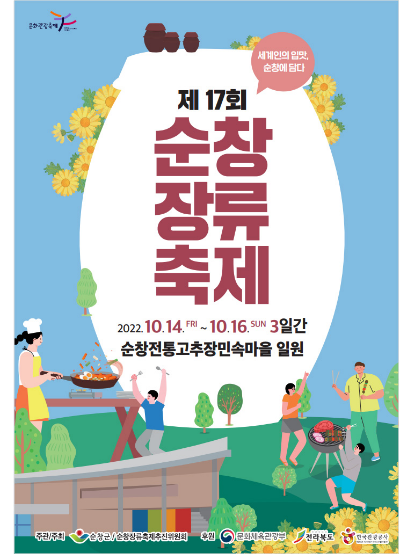 - 행사 소개 : 대한민국의 대표 먹거리 고추장의 본 고장 순창에서 장류를 테마로 다양한 체험거리와 볼거리, 푸짐한 먹거리로 3일간 순창고추장민속마을 일원에서 제17회 순창장류축제가 열립니다.
