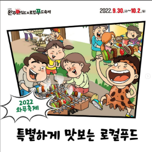 - 행사 소개 : 청정완주의 신선한 로컬푸드와 주민들의 노력이 만들어낸 흥겨운 축제마당입니다. 자연 친화적 안전한 친환경 축제, 체류형 힐링 축제로 와일드한 자연친화&아웃도어 체험과 건강한 먹거리 로컬푸드를 즐길 수 있는 축제입니다.