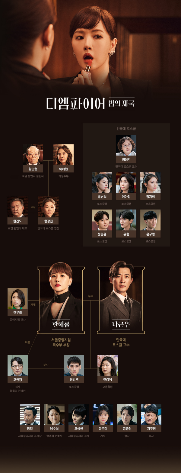 김선아, 안재욱, 이미숙, 송영창, 신구, 오현경 배우 등 라인업이 너무나 화려한 ‘디 엠파이어: 법의 제국’은 새로운 JTBC 토일드라마입니다. 오랜만에 안방극장으로 돌아온 김선아가 보여줄 연기 모습과 연기파 배우들의 숨 막히는 연기 대결이 예상되는 드라마입니다. 다만 너무 자주 등장하는 범죄 치정 멜로드라마라는 소재가 아쉽습니다.