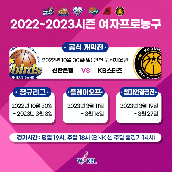 WKBL(한국여자농구연맹)은 2022~2023 여자프로농구 일정을 확정해 발표했습니다.