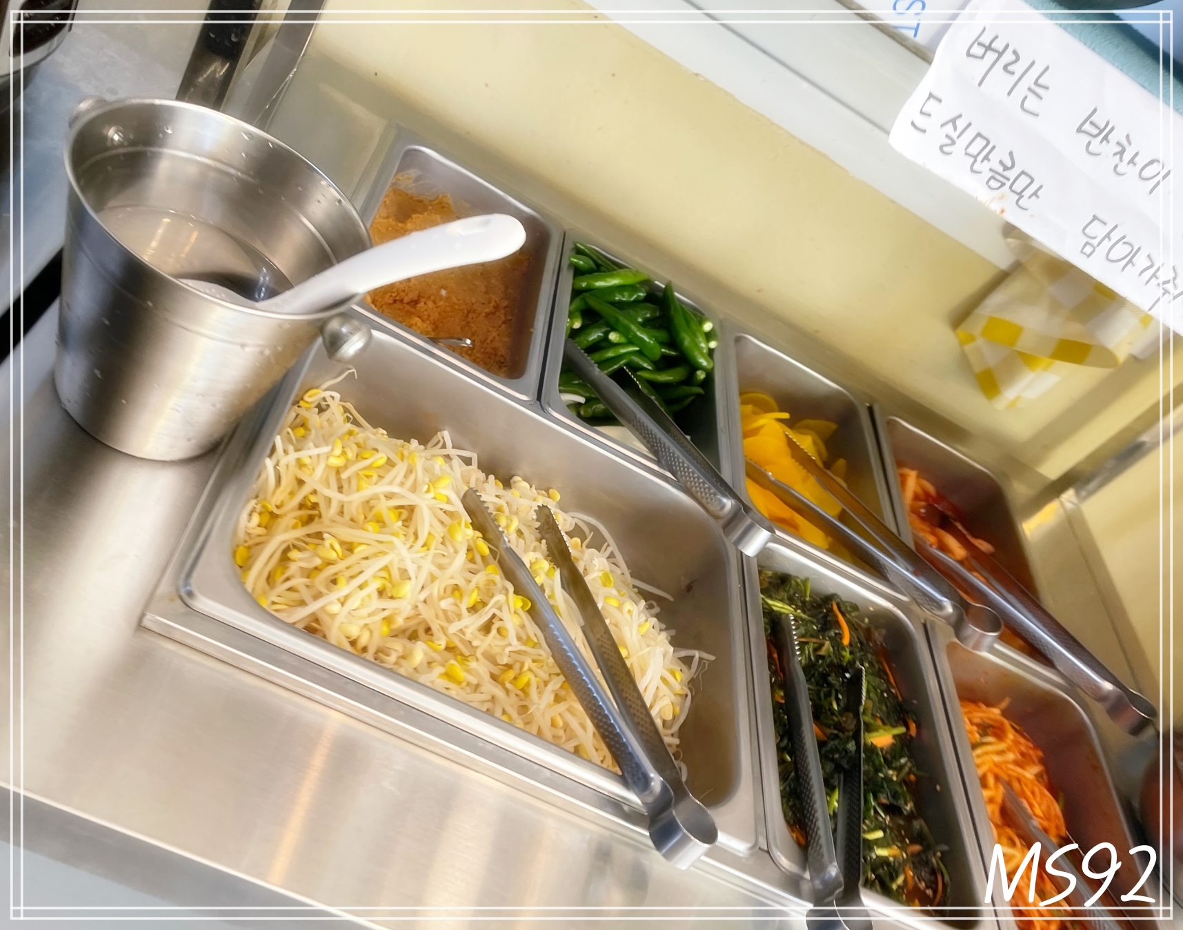 반찬도 셀프로 이용할 수 있으니 먹고 싶은 반찬은 편하게 가져다 먹어서 좋았습니다. 반찬을 좋아하는 사람 입장에서 자꾸 추가로 더 달라고 하면 불편할때가 있는데 여기는 먹고 싶은 만큼 가져다 먹을 수 있으니 좋았습니다. 물론 먹을 만큼만 담아가야죠. 먹다 남기면 안 되니까요.
