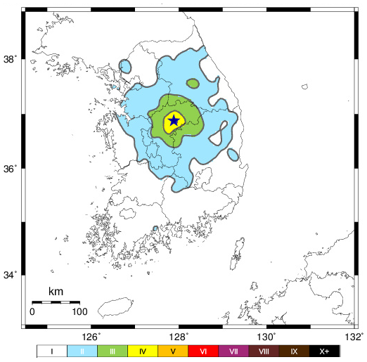 (위도: 36.88 N, 경도: 127.88 E, ± 0.8km)
