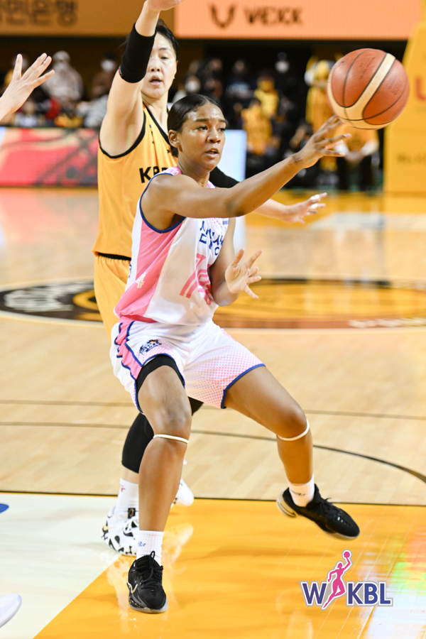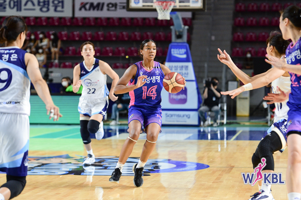 신인 드래프트 전체 1순위로 삼성생명 유니폼을 입은 키아나 스미스는 데뷔전인 개막경기에서 21점 4리바운드 5어시스트로 활약했습니다. 키아나 스미스는 여자프로농구 개막전 신인선수 최다 득점을 경신하며 완벽한 데뷔전을 선보였습니다. 삼성생명 베테랑 배혜윤이 19점 16리바운드로 골밑을 책임졌고, 강유림도 3점슛 4개 포함 26점을 쓸어 담았다. 이해란도 11점 11리바운드로 힘을 보탰습니다.