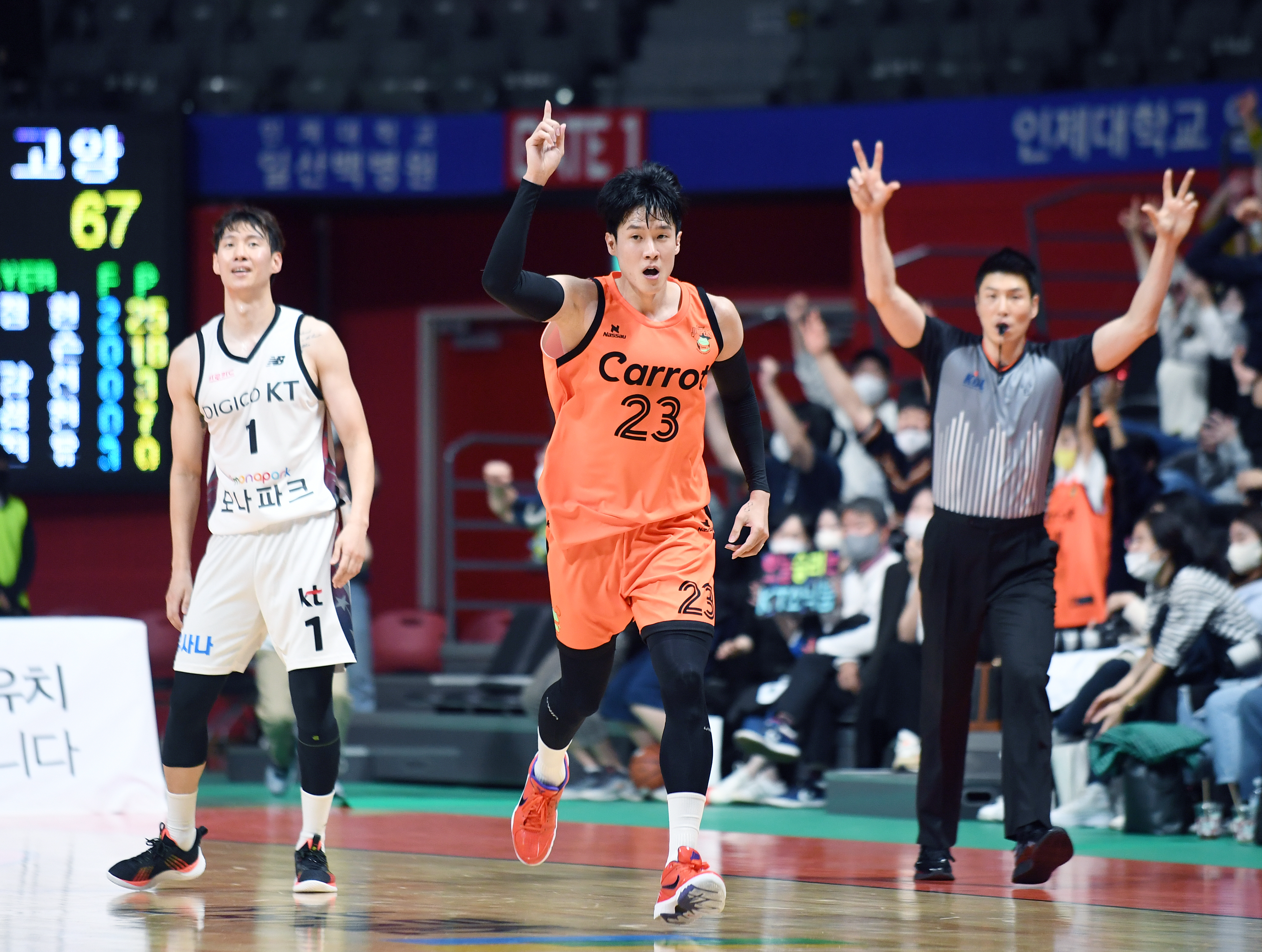 남자 프로농구에서는 2022~2023 SKT 에이닷 프로농구 정규리그 1라운드 MVP로 고양 캐롯 점퍼스 전성현이 선정되었습니다. 전성현은 생애 최초로 MVP에 선정됐으며, 기자단 투표에서 총 유효 투표수 86표 중 38표를 받아 23표의 오마리 스펠맨(인삼공사)를 따돌렸습니다. 지난 시즌까지 안양 KGC인삼공사에서 뛰다가 자유계약(FA)을 통해 신생팀 고양 캐롯에 둥지를 튼 전성현은 1라운드 9경기에서 평균 31분 29초를 출전했습니다. 경기당 17.1점으로 전체 5위에 올랐고, 평균 3.3개의 3점슛으로 이 부문 공동 선두에 이름을 올렸으며, 팀 내 득점 1위의 기록입니다. 캐롯은 전성현의 활약을 앞세워 1라운드를 6승3패, 공동 2위로 마쳤습니다. MVP 기념 트로피와 상금 200만원이 주어집니다.