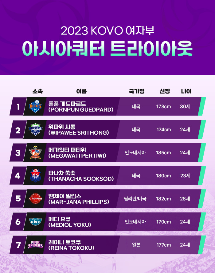 2023 여자프로배구 아시아쿼터 선수 선발 명단 및 선수 소개