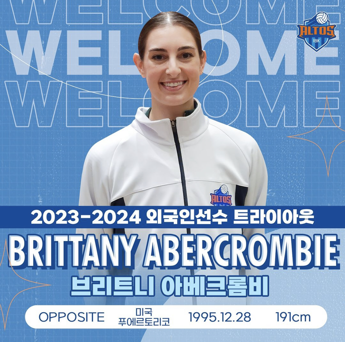 2022-2023 시즌의 성적 역순으로 구슬 확률 추첨을 한 결과 두 번째로 많은 구슬을 추첨기에 넣었던 IBK기업은행이 전체 1순위 지명권을 얻었습니다. IBK기업은행 김호철 감독은 지난 시즌 튀르키예 리그에서 활약했던 신장 191cm의 아포짓 스파이커 브리트니 아베크롬비를 지명했습니다. 미국과 푸에르토리코 이중 국적을 보유하고 있는 아베크롬비는 국제대회에서 푸에르토리코 대표로 활약하는 선수입니다.
