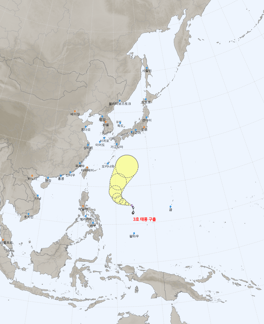 제3호 태풍 '구촐'이 필리핀 동쪽에서 발생해 일본 오키나와 방향으로 향하고 있습니다. 새롭게 발생한 3호 태풍 구촐이 우리나라에 직접적인 영향을 줄 가능성은 희박할 것으로 예상됩니다.