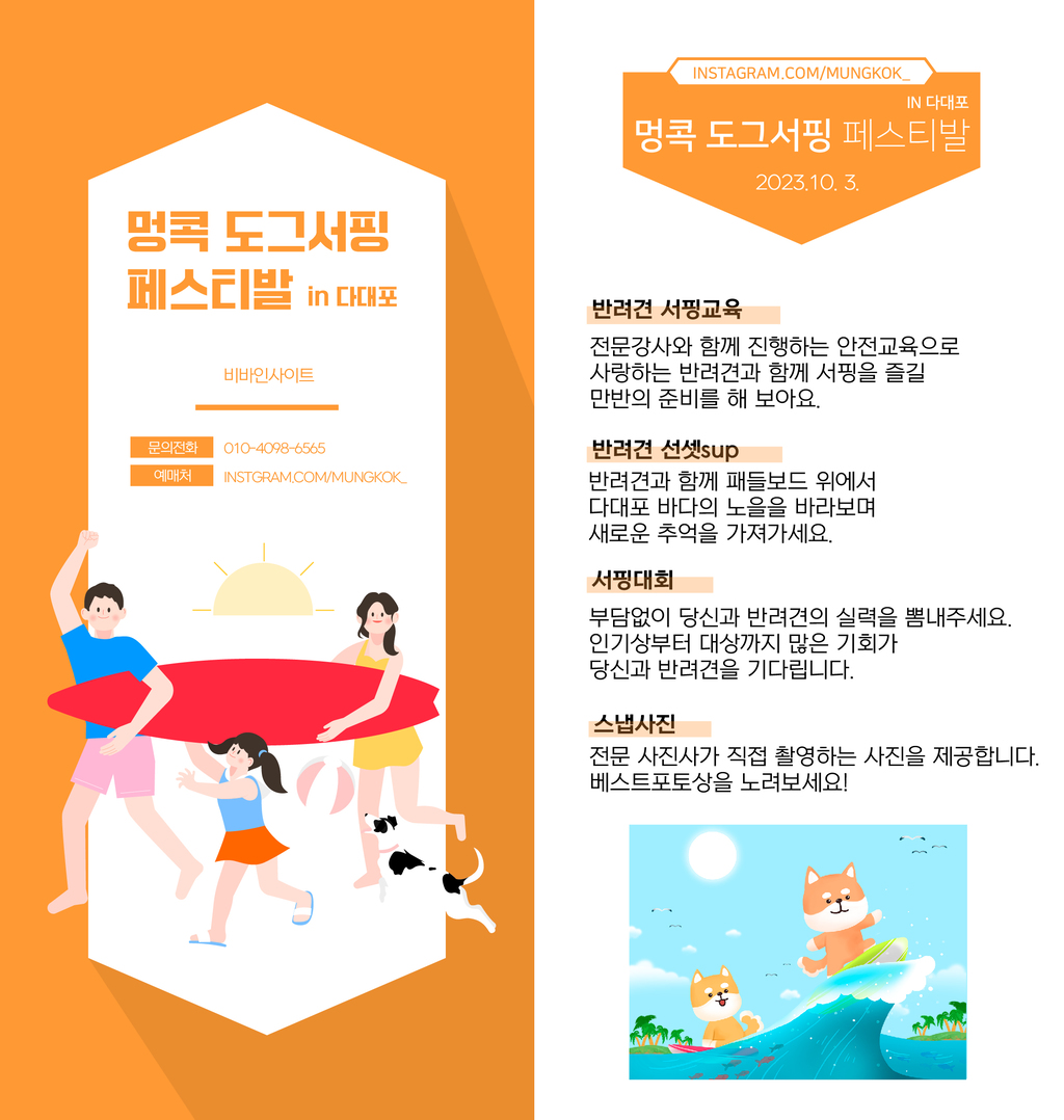 · 프로그램 : 반려견 동반 서핑 및 SUP 강습,