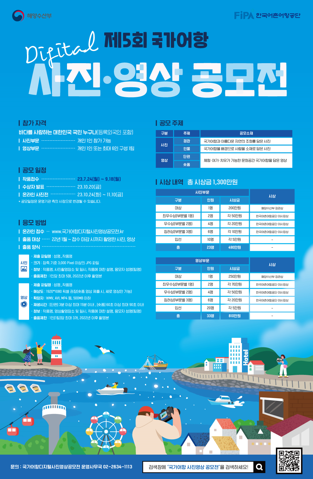 어촌의 생활과 경제 중심인 국가어항의 중요성을 알리고, 많은 관광객들이 국가어항과 어촌을 찾을 수 있도록 하기 위한 디지털 사진‧영상 공모전이 열립니다.