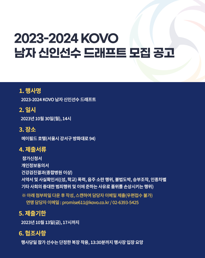 [2023-2024 KOVO 남자 신인선수 드래프트 시행 세칙] 2023. 09. 19