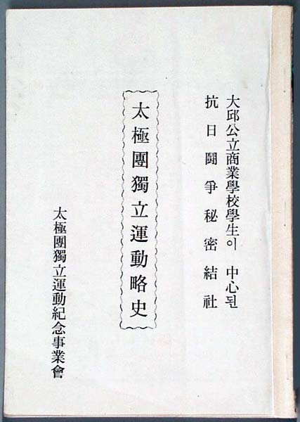 대구 출생의 서상교(1923년) 선생은 대구상업학교 5학년에 재학중이던 1942년 5월, 김상길·이상호와 함께 항일비밀결사인 ‘태극단’을 조직, 민족의식 고취와 학술 연구, 체력 향상 등의 활동에 나서는 한편, 군사학에도 관심을 갖고 관련 서적의 번역, 폭발물 제조에 관해서도 연구하였습니다. 그러나 주위의 밀고로 단장 이상호가 대구경찰서 고등계 형사에게 체포되었으며, 그의 집에서 태극단 관련 문서가 발견되어 서상교 선생을 비롯한 26명의 단원 모두가 체포되면서 태극단은 와해 되었습니다.