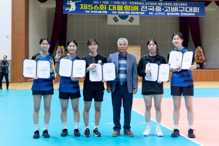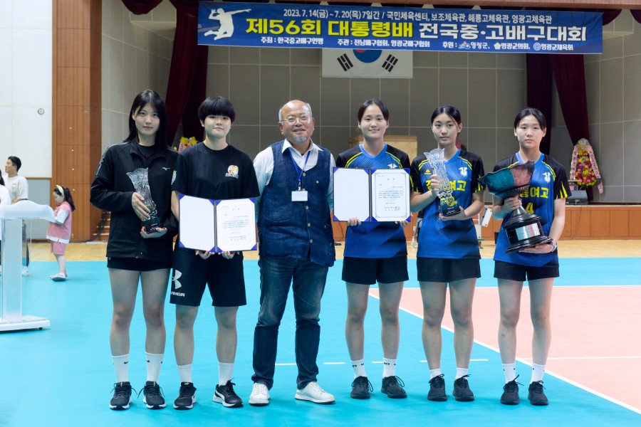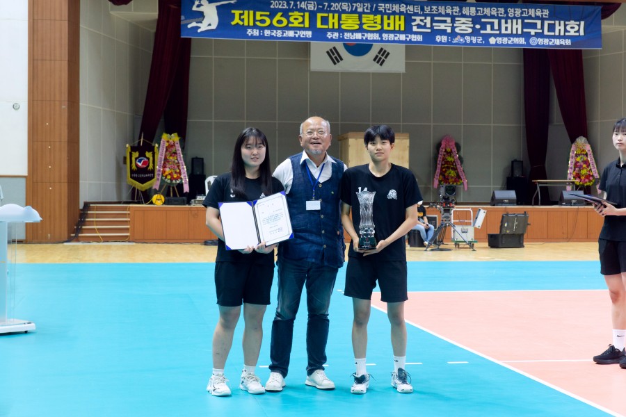 [제56회 대통령배 전국중.고배구대회 단체상 학교 및 시상식 장면]