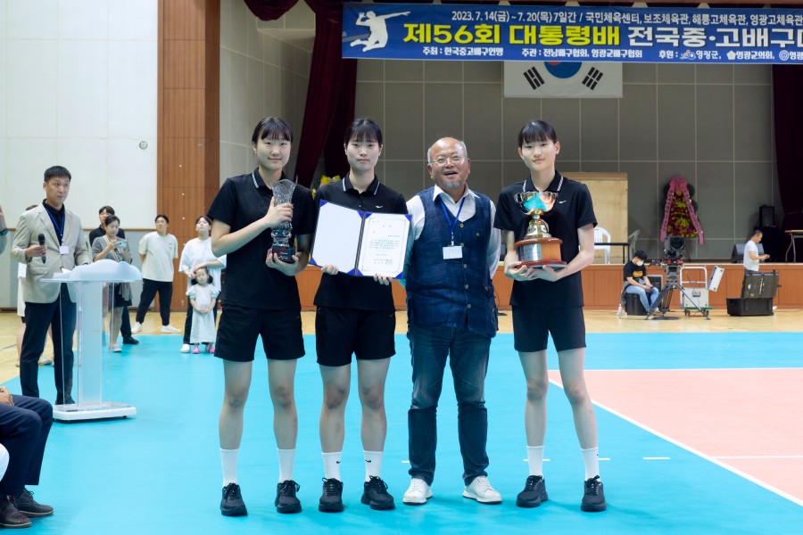 [제56회 대통령배 전국중.고배구대회 단체상 학교 및 시상식 장면]