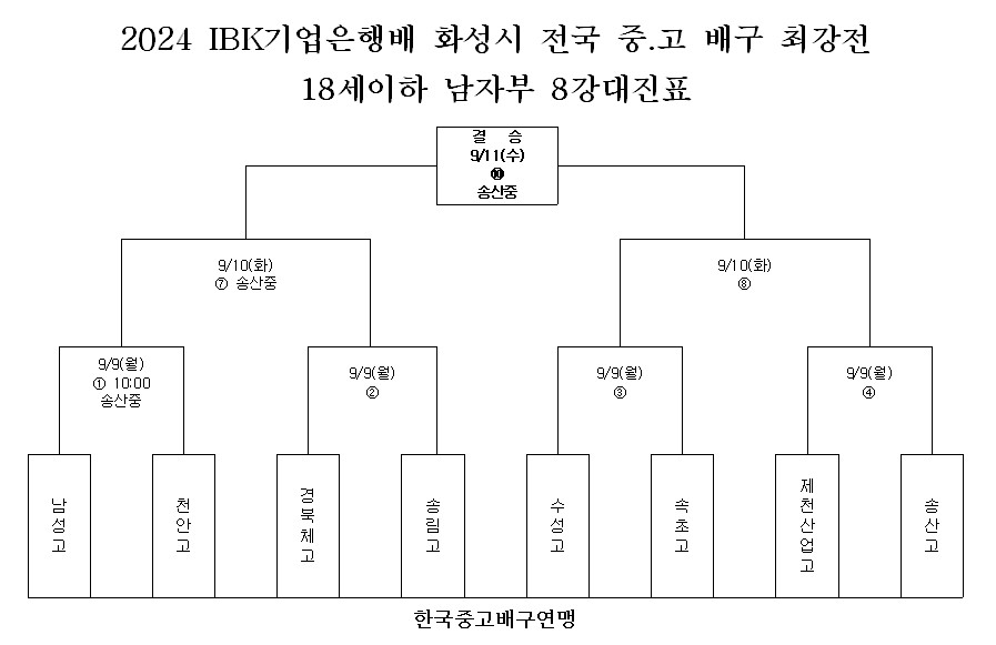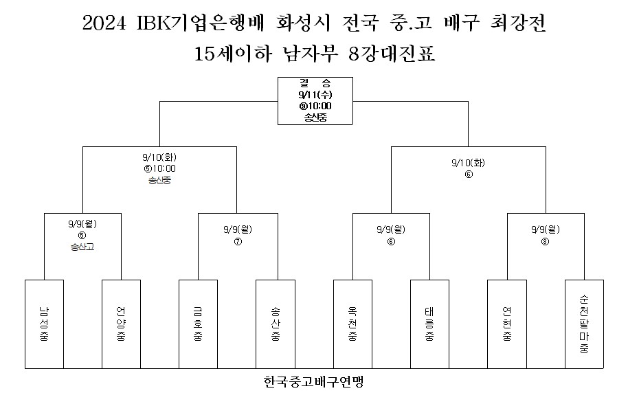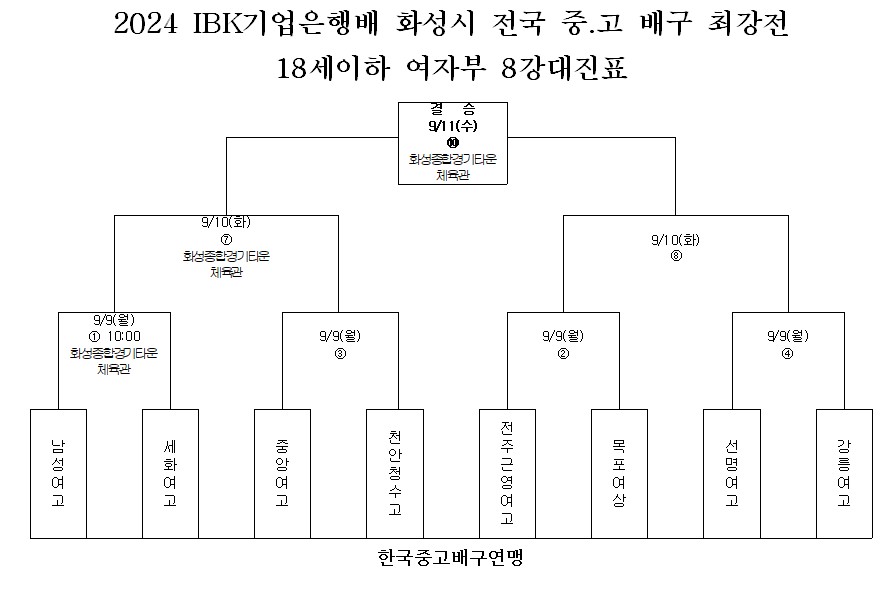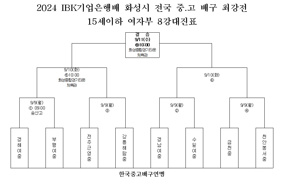 1. 대회명 : 2024 IBK기업은행배 화성시 전국 중.고 배구 최강전 배구대회