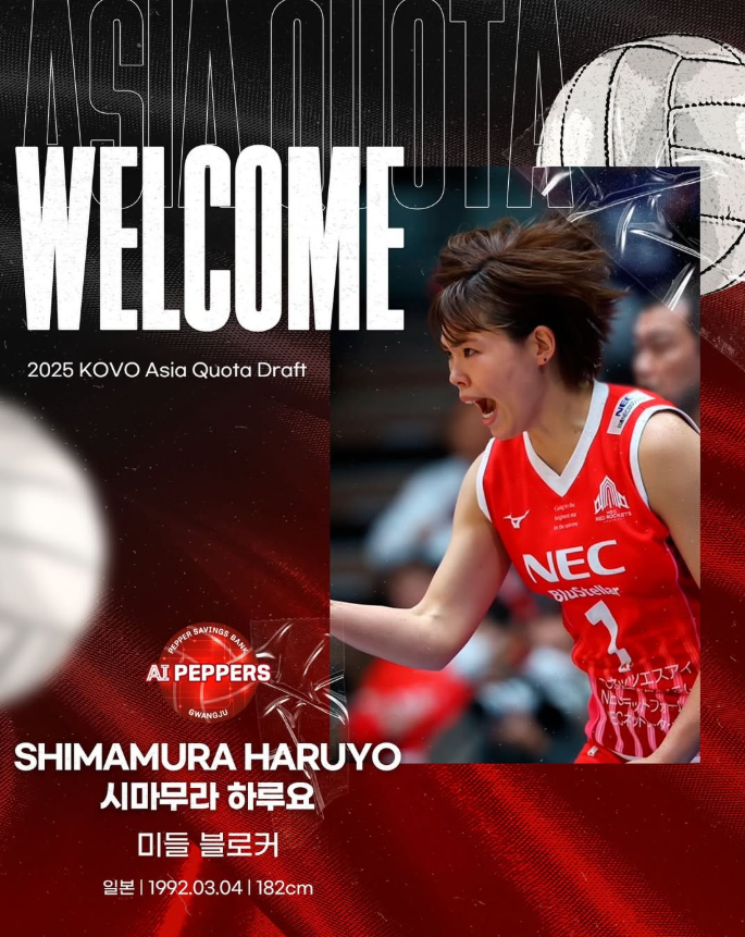 여자 프로배구 페퍼저축은행이 아킬레스건 부상으로 시즌 출전이 어렵게 된 아시아쿼터 스테파니 와일러를 대체할 선수로 일본 국가대표 출신의 미들블로커 시마무라 하루요를 영입했습니다.
