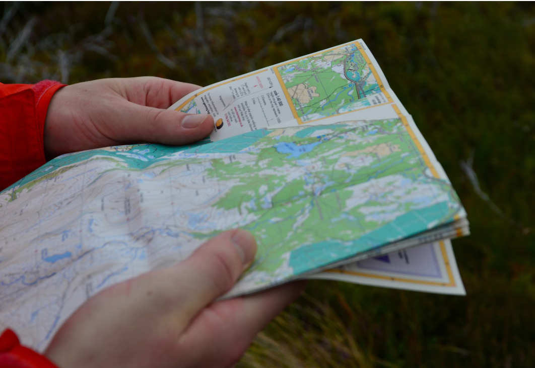 오리엔티어링은 지도와 나침판을 들고 산속의 여러 지점을 통과하여 최종 목적지까지 정해진 시간 내에 찾아가는 스포츠입니다.