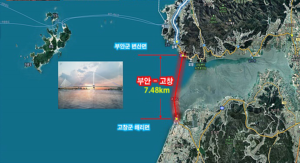 - 연결 지역: 고창군 해리면 동호리와 부안군 변산면 도청리