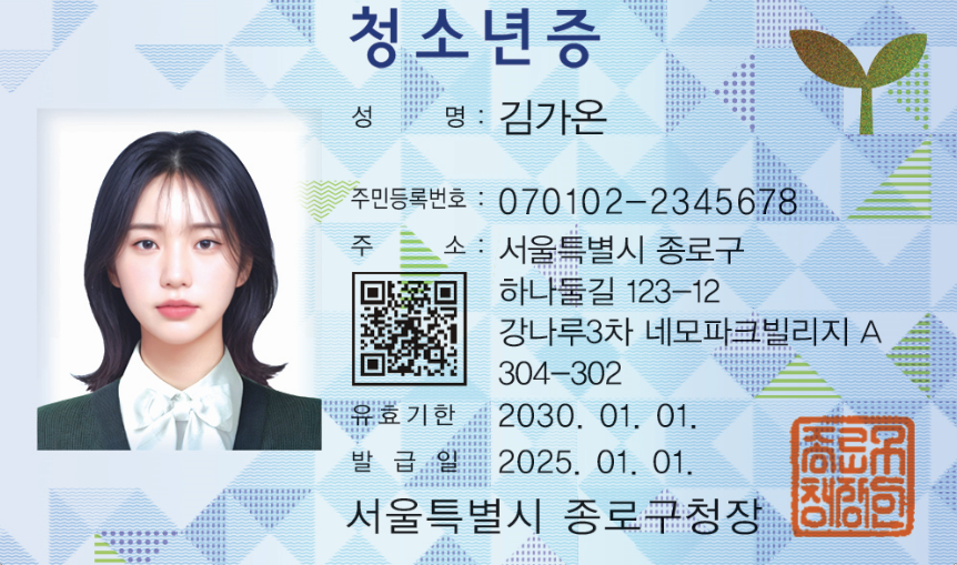 청소년증은 9세에서 18세 청소년에게 발급되는 ‘공적신분증’으로 대학수학능력시험·검정고시·자격증·외국어능력시험 등 각종 시험장이나 병원 등에서 신분증으로 활용할 수 있고, 대중교통과 각종 문화·여가시설 이용 시 청소년 할인 혜택이 적용됩니다.
