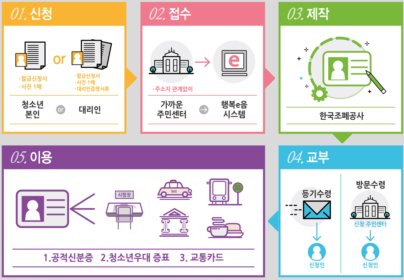 9~18세 청소년은 누구나 무료로 발급받을 수 있는 신분증을 말합니다. 교통카드 기능 추가된 청소년증 발급 가능(선택)합니다.