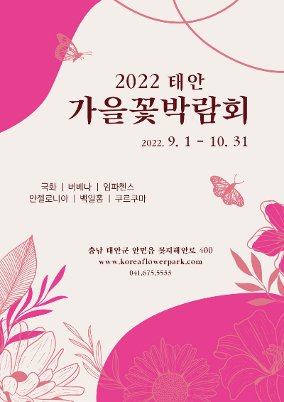 연중 운영(겨울 제외)되며 활짝 핀 꽃들이 아름다운 코리아플라워파크에서 9월 1일부터 10월 31일까지는 수국, 임파첸스, 버베나 등 풍요로운 가을을 적셔줄 2022 태안 가을꽃박람회가 펼쳐집니다.