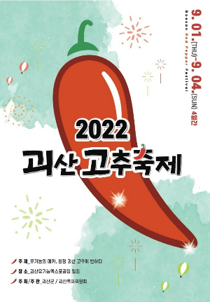 천혜의 자연환경을 자랑하는 유기농의 고장 충북 괴산에서 괴산고추축제를 개최합니다. 전국 최고의 맛을 자랑하는 괴산청결고추를 포함한 각종 농특산물과 다양한 체험거리, 볼거리, 먹거리를 한자리에서 만날 수 있는 괴산고추축제는 문화체육관광부 선정 문화관광유망축제(2012년~2019년)이자 충청북도 우수축제(2020년)입니다.