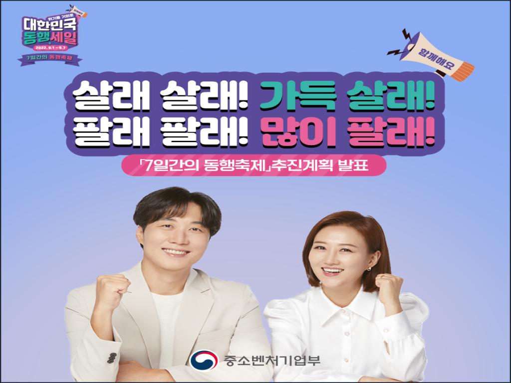 9월 1일부터 중소기업·소상공인 제품 소비촉진 행사인 '7일간의 동행 축제'가 열립니다. 그중 특별행사로 열리는 국민참여형 이벤트 상생소비복권를 알려드립니다. 많은 응모를 통해 좋은 결과 있기를 응원합니다.